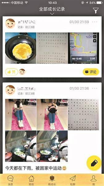 每日修煉表除了包括練字、完成“買菜+做飯+洗碗”等家務(wù)、跑步等必做任務(wù)外,還包括寫觀察日志、去圖書館、博物館等選做任務(wù)。而放假以來,這個平臺一直很熱鬧,很多同學(xué)每天一起床就開始記錄自己的寒假生活。