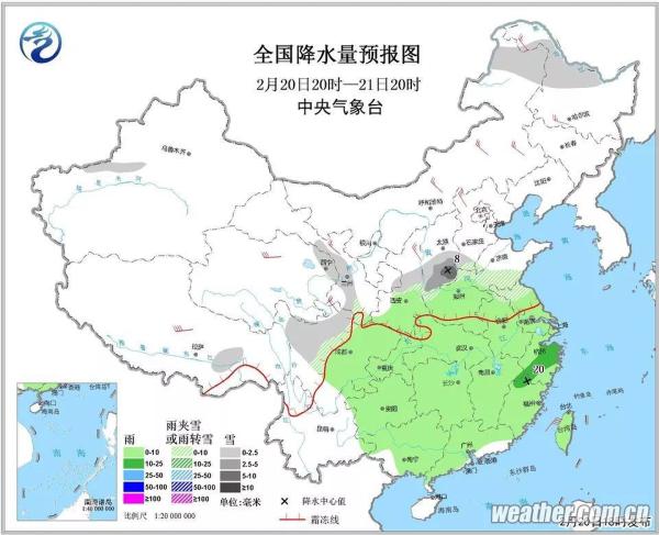 中央氣象臺(tái)預(yù)計(jì),20日至21日,青海東部、甘肅大部、寧夏、陜西中北部、山西南部、黃淮北部、川西高原北部等地有小到中雪或雨夾雪,甘肅東部、寧夏南部、山西南部等地局地有大雪。西南地區(qū)東部、黃淮南部、江漢、江淮、江南、華南北部等地有小雨,其中江淮南部、江南中東部等地的部分地區(qū)有中雨,局地大雨。內(nèi)蒙古大部、西北地區(qū)東部、華北北部等地有4~6級(jí)風(fēng)。