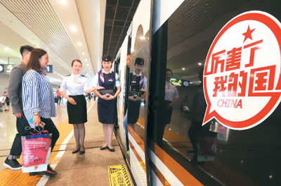 “厲害了,我的國(guó)!”在以350公里時(shí)速行進(jìn)的“復(fù)興號(hào)”列車(chē)上,這6個(gè)紅色的大字格外醒目。