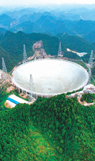 被譽(yù)為“天眼”的國(guó)家重大科技基礎(chǔ)設(shè)施500米口徑球面射電望遠(yuǎn)鏡,于2016年9月25日落成啟用。新華社記者 劉 續(xù)攝