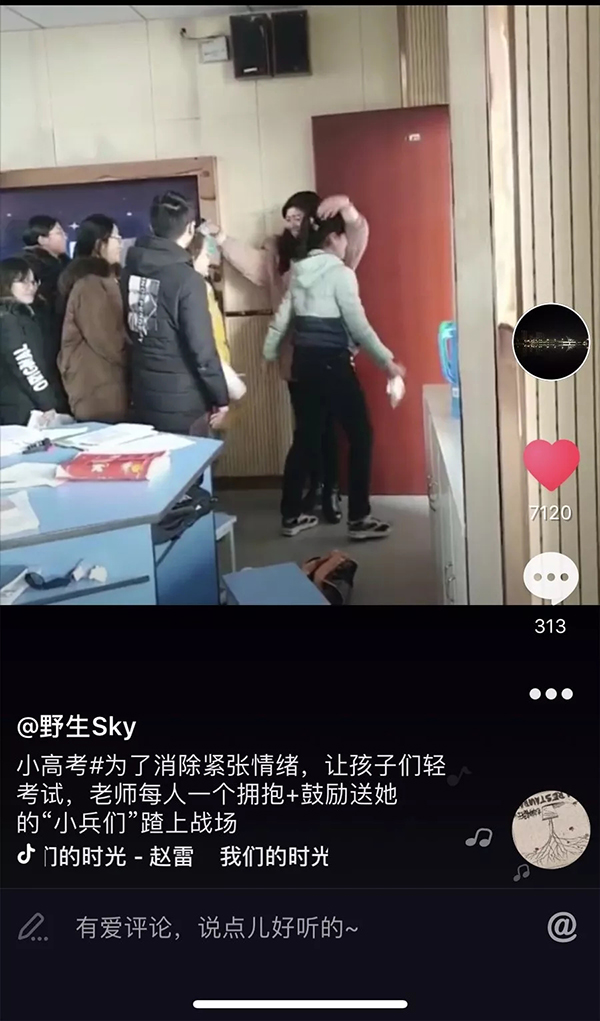 近日,在某視頻社交媒體上,一段老師在教室門口挨個擁抱學生的短視頻獲得數(shù)萬點贊。有網友表示,“雖然是簡單的擁抱,卻很溫暖,為老師點贊”。
