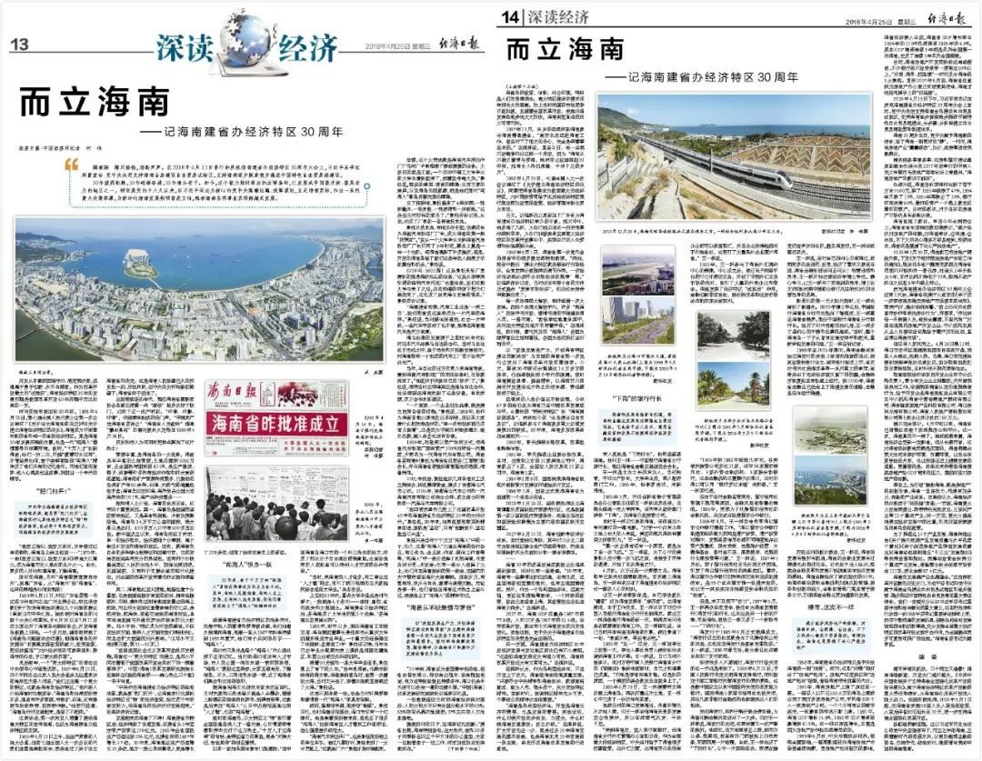 今日《經濟日報》推出深讀經濟系列報道《而立海南》。