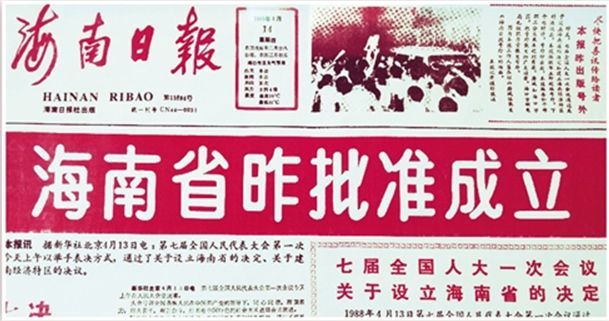 1988年4月14日,海南日報刊發(fā)海南省批準成立的新聞。本報記者 何 偉攝