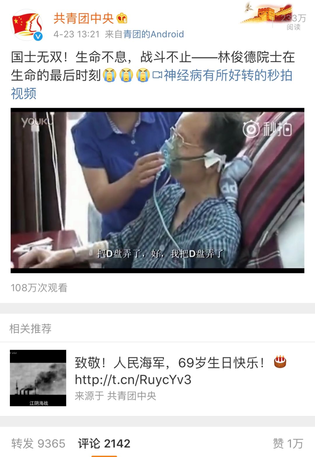 23日,@共青團中央 微博發(fā)的這個視頻,近萬網友轉發(fā),評論令人動容…