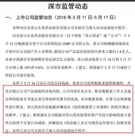 公眾質(zhì)疑也得到了有關(guān)方面的呼應(yīng)。據(jù)報(bào)道,5月18日晚間,深交所官方微信發(fā)布公告稱(chēng),深交所已經(jīng)對(duì)“常山藥業(yè)”及相關(guān)當(dāng)事人啟動(dòng)違規(guī)處分程序。