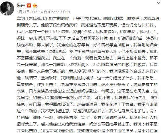 這要是兩位單身,或許還好一點,關(guān)鍵是這可是兩個為人父母的,說出這么高山流水覓知音的話,確實不合適。不但如此,周一圍的夫人,朱丹在微博里一直為老公賣力宣傳。
