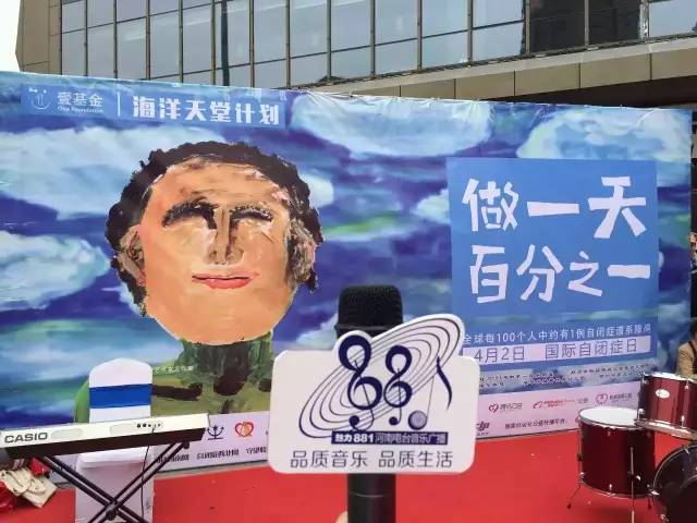 4月2日下午,由我們魅力881河南第一音樂廣播主辦的一場關(guān)愛自閉癥人群的“做一天百分之一”活動,在中原萬達(dá)廣場,暖心上演。100個家庭、80名大學(xué)生志愿者和其它社會群眾,用他們獨(dú)有的方式,共同倡導(dǎo)全社會共同關(guān)愛自閉癥患者群體。