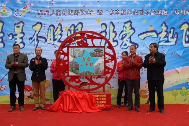 省殘聯(lián)原副理事長(zhǎng)王永章、河南電臺(tái)農(nóng)村廣播綠色頻道FM1074副總監(jiān)寒江,省殘疾人康復(fù)教育研究中心原主任陳殿奇、張定邦村委黨支部書記兼村委主任張?zhí)駷槲挥趶埗◣痛宓摹靶切莾和濉边M(jìn)行了揭牌儀式,這也是全國首個(gè)“星星兒童村”。