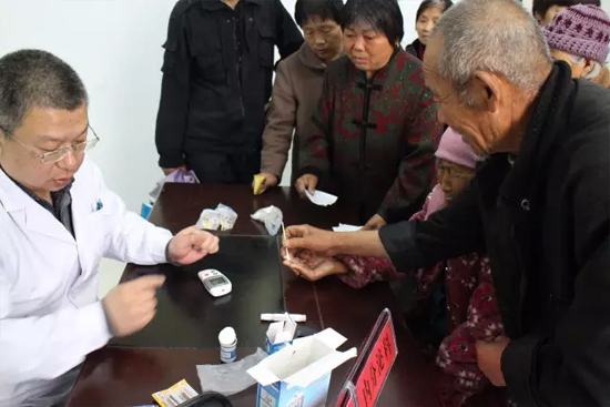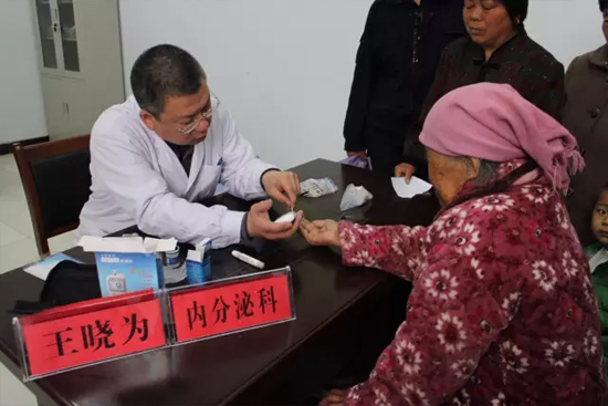 醫(yī)生正在為79歲的老奶奶測(cè)血糖