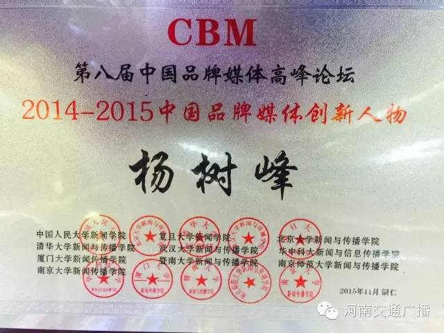 本屆論壇上,河南交通廣播總監(jiān)楊樹峰榮獲2014-2015中國品牌媒體創(chuàng)新人物稱號,這是對他個人成就的肯定,更體現(xiàn)了河南交通廣播運管機制的成功,人文關(guān)懷、扁平化管理,民主決策、智慧碰撞,從決策層發(fā)出的指令,成為掌控河南交通廣播精準運行,走向成功的靈魂,而我們一切的努力,都是為了實現(xiàn)一個目標:無論何時、何地,無論現(xiàn)在、未來,伴你出行每一刻。