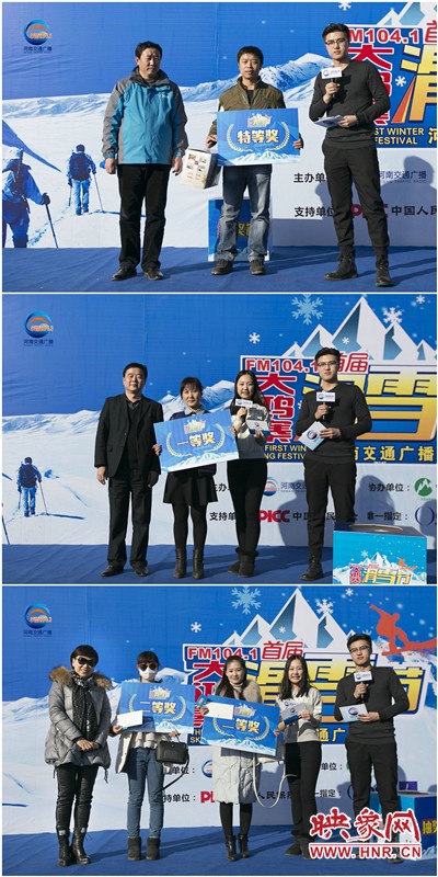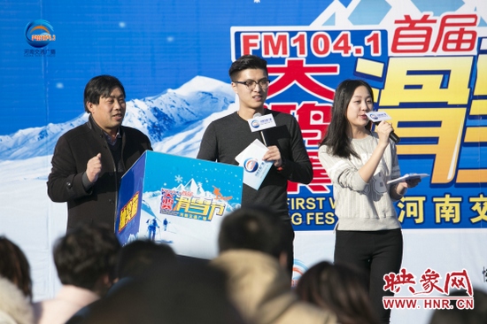 準備工作已經(jīng)就緒,車友們已經(jīng)按捺不住要滑雪的心情了,在滑雪正式開始之前,1041《MORE FUN 音樂》主持人王哲和《馬路歡樂派—早間》主持人彎彎,禹州市大鴻寨臥佛山旅游開發(fā)有限公司總經(jīng)理王鋒偉先生也來給大家加油打氣了。