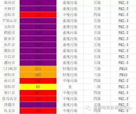 從即時(shí)起至16日,鶴壁、濮陽、鄭州、開封等15個(gè)省轄市和鞏義、蘭考、汝州、鄧州、永城、固始、鹿邑、新蔡等8個(gè)省直管縣(市)啟動(dòng)不低于黃色預(yù)警的重污染天氣應(yīng)急響應(yīng)。
