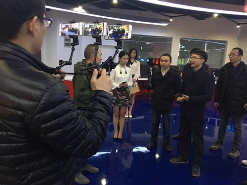 一點資訊、映象網的徐總和一步用車的領導正在暢聊中! 同步分發(fā)平臺來進行直播 話說我們的工作人員也相當敬業(yè)呢!