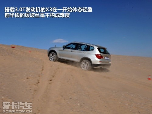或許是奧迪Q5完成測(cè)試的過程比較順利,我們對(duì)接下來即將登場(chǎng)的寶馬X3也普遍比較看好,這或許就是思維慣性帶來的固定套路吧。然而在實(shí)地測(cè)試過程中,這臺(tái)X3攀爬沙丘的過程卻沒有表現(xiàn)出它在公路上所煥發(fā)出的霸氣。400牛·米的最大扭矩在城市道路中,甚至在高速公路上都是無與倫比的,但移步至眼前狂風(fēng)大作的沙丘,這400?!っ椎呐ぞ貏t像是心有余而力不足的悲情英雄。