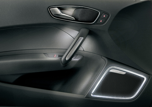 家族式的大嘴是A1融入奧迪車系的敲門磚,相信這種臉譜式的特點會在未來很長一段時間內(nèi)在奧迪車型中延續(xù)下去,三角形的前大燈精致銳利,內(nèi)側(cè)飛翼式的線形LED燈飾進一步增強了整個前臉咄咄逼人的氣勢。為了增加A1整體造型的厚重感,奧迪的設(shè)計師將腰線設(shè)置的較高,從前大燈一直延伸到尾燈,而A柱到C柱間的這條車頂弧線則可選擇不同的色彩,充分滿足消費者的個性化需求,并且讓整個側(cè)面看上去更有層次,也更具活力。寬寬的C柱決定了A1尾部的Coupe風(fēng)格,大角度傾斜的設(shè)計不同于傳統(tǒng)意義上的兩廂車,在與設(shè)計師的交流中得知,這一點也是A1突破傳統(tǒng)的重要體現(xiàn),不過需要說明的是,這種設(shè)計不可避免的影響到了一定的儲物能力。紅色的LED尾燈是尾部的設(shè)計亮點,尾門的環(huán)抱式設(shè)計風(fēng)格顯然是來自于更高檔的奧迪Q5,有效提升了A1的檔次感。總體來說,A1在造型上并沒有太多生硬的成分,而是通過各種線條的呼應(yīng),著重體現(xiàn)富有觀賞性的多層面組合效果,帶來一種更感性的體驗。