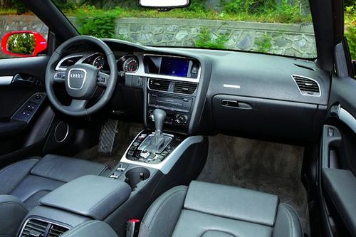 奧迪A5 Cabriolet 2.0T雖然身為一款敞篷跑車,但其內(nèi)飾設(shè)計卻與奧迪轎車的整體風(fēng)格完全一致。在這個座艙里,我們看不到大面積的金屬裝飾,也找不到刺激駕駛者腎上腺素分泌的夸張設(shè)計。黑色依然是座艙的核心色調(diào),各種豪華配置告訴我們——這并不是一款過分追求動態(tài)性能的車,舒適才是它的首要任務(wù)。駕駛臺上,MMI多媒體互動系統(tǒng)依舊是所有座艙系統(tǒng)的核心。與上一代系統(tǒng)相比,新一代MMI多媒體交互系統(tǒng)的改進包括3個方面:第1,硬盤驅(qū)動的導(dǎo)航系統(tǒng)功能更加強大;第2,屏幕顯示和圖像處理能力均有提升;第3,操作按鍵的設(shè)計更加人性化,便于用戶靈活自如地使用各項功能。
