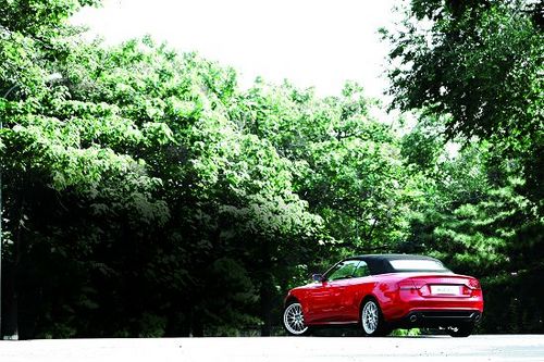 雖然對奧迪A5 Cabriolet 2.0T已經(jīng)非常熟悉,但在走到它身邊的時候還是興奮不已。毋庸置疑,火紅色的奧迪A5 Cabriolet 2.0T實在是太美了,低矮的車身極具運動韻味,黑色的折疊軟頂在紅色車身的映襯下非常搶眼。最令人欣喜的是,奧迪A5 Cabriolet 2.0T的前風(fēng)擋外框采用了亮銀色涂裝,并延伸至駕駛艙周身,構(gòu)成了一個完整的裝飾圈,起到了畫龍點睛的作用。