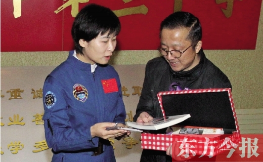 劉洋“飛天”后首次回家鄉(xiāng) 收下今報(bào)記者為她寫的書