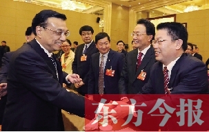 聚焦全國(guó)兩會(huì) 聽(tīng)說(shuō)是河南委員 李克強(qiáng)和他緊緊相握