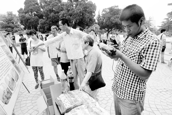 昨天上午,紫荊廣場,在公安機關繳獲的假飲料、糖貨展臺前,不少市民拿著假冒的可樂翻來覆去地看,想找出破綻。