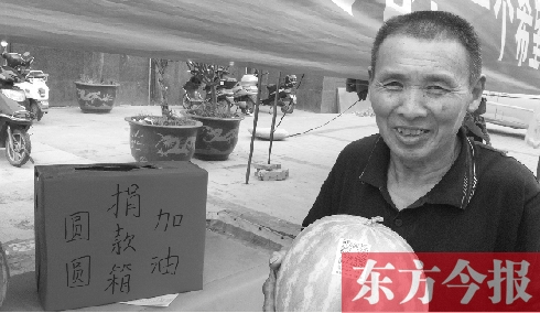 20日,東方今報(bào)報(bào)道了鄭州嵩山路辦事處嵩南社區(qū)聯(lián)合義工“練攤”叫賣愛心西瓜的事兒。昨日上午9時(shí),嵩南社區(qū)郭文雅書記和工作人員來到了河南省煤炭總醫(yī)院,看望身患脊髓炎的小女孩圓圓,并送去了第一筆愛心西瓜善款。與此同時(shí),嵩南社區(qū)門前的愛心瓜攤兒還在繼續(xù)叫賣,義工組織的愛心西瓜活動(dòng)還在接力?!鯑|方今報(bào)首席記者 申子仲/文圖