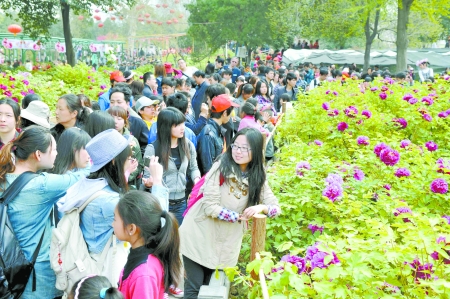 4月4日,在洛陽王城公園,來自四面八方的游客在觀賞盛開的牡丹花。4月5日,為期1個(gè)月的第30屆洛陽牡丹文化節(jié)將隆重開幕,洛陽市各大公園的各色牡丹也將陸續(xù)綻放,中外游客盡可以感受古都洛陽的今日風(fēng)采,觀賞洛陽牡丹的嬌艷芳容。 河南日?qǐng)?bào)農(nóng)村版記者 楊遠(yuǎn)高 攝