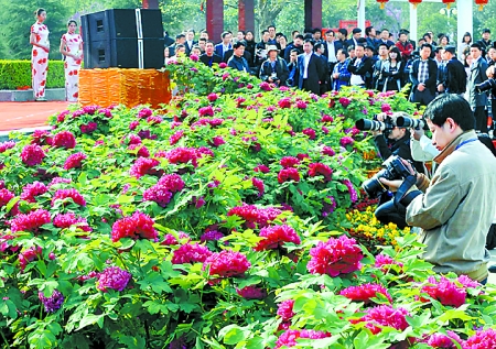 目前,洛陽市牡丹種植面積已達(dá)7萬多畝,其中觀賞牡丹1萬余畝,品種1200多個,是名副其實的“牡丹花都”。為滿足不同游客的觀賞需求,今年牡丹文化節(jié)期間,洛陽市對各牡丹觀賞園進(jìn)行了整體規(guī)劃,并通過技術(shù)手段人工調(diào)控花期,確保4月5日至5月5日市區(qū)、市郊、南部山區(qū)的牡丹形成早、中、晚次第開放的格局。