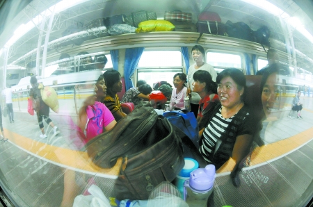 據(jù)鄭州鐵路局介紹,8月20日到9月11日,鄭州鐵路局加開了23趟棉農專列運送摘棉工進疆。為方便棉農就近上車,節(jié)約棉農旅途成本,這些列車將分別從棉農較集中的商丘、許昌、寧陵、蘭考等車站始發(fā)。 (趙鵬 攝)