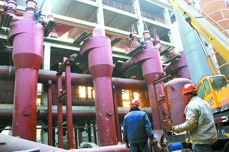 3月16日,河南煤化安化集團(tuán)公司造氣系統(tǒng)16臺(tái)新型節(jié)能造氣爐技術(shù)改造項(xiàng)目正在緊張施工,項(xiàng)目全部投產(chǎn)后,每噸合成氨耗煤有望下降10%以上,年增經(jīng)濟(jì)效益5000萬元。 李希軍 攝
