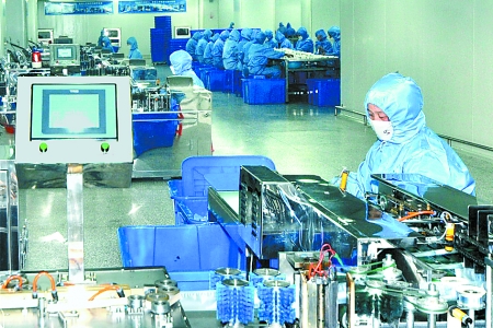 3月17日,工人們?cè)卩P縣醫(yī)療器械孵化園內(nèi)工作。該孵化園區(qū)以圣光集團(tuán)為依托,吸引了20家注射器、手術(shù)包等醫(yī)療器械生產(chǎn)研發(fā)企業(yè)入駐,年創(chuàng)利稅9000萬元,并為當(dāng)?shù)靥峁┝?000多個(gè)就業(yè)崗位。 王堯 攝
