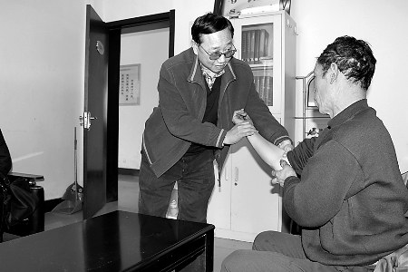 義馬市副市長程相渠關心地查看信訪群眾喬馬強的傷情。