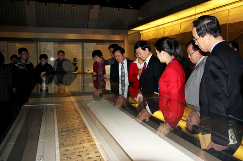 據(jù)悉,參觀河南博物院是此次由河南省中韓文化交流協(xié)會、河南省形象設計協(xié)會邀約的韓國文化交流團訪豫的第二站(第一站參觀訪問了開封中國翰園碑林),第三站是在鶴壁市進行文化和經(jīng)貿(mào)方面的交流和對接。