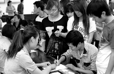 5月8日,在2012年民營企業(yè)招聘周活動武陟縣分會場,一位求職者在填寫求職登記表。本次招聘周活動該縣共有31家民營企業(yè)參加,涉及工種116個,提供就業(yè)崗位1439個。馮小敏 張新草 攝