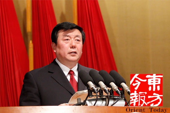 1月25日,河南省第十二屆人民代表大會第一次會議舉行了兩院報告會議。圖為檢察院院長蔡寧在作報告 記者 沈翔圖