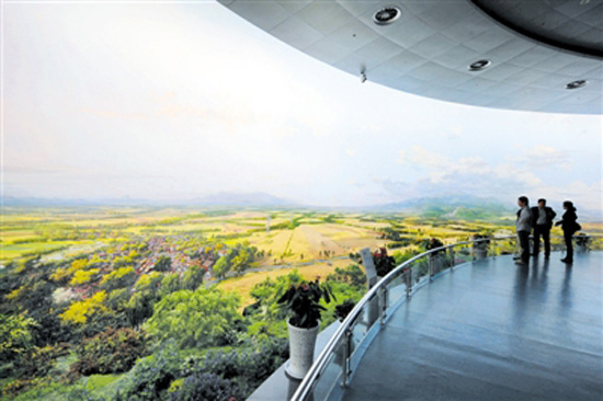 3、四層《錦繡中原》全景圖,給你全方位展示全省十八個省轄市的山川原野、城鄉(xiāng)風光、名勝古跡、人文景觀,在這幅宏偉畫卷里,讓你領(lǐng)略什么是歌天頌地、富于創(chuàng)新、震撼人心,中原大地有著怎樣的遠古、現(xiàn)代和未來。