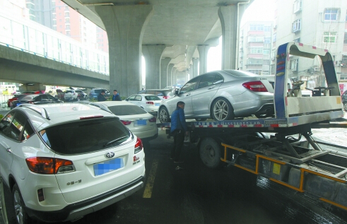 橋下停的百余輛車被泡了一夜