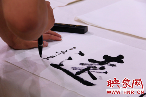 高校學(xué)生代表現(xiàn)場書法展示(丁靚琦/攝)