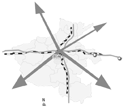 “米”字形快速鐵路網(wǎng),是國務(wù)院批復(fù)《中原經(jīng)濟區(qū)規(guī)劃》和《鄭州航空港經(jīng)濟綜合實驗區(qū)發(fā)展規(guī)劃》明確的重大工程,具體就是在京廣和徐蘭“十”字形快速客運通道基礎(chǔ)上,建設(shè)鄭州至萬州、鄭州至濟南、鄭州至合肥、鄭州至太原的高速鐵路。根據(jù)鄭州都市區(qū)整體規(guī)劃,未來將形成以鄭州為中心的“米”字形高鐵輻射網(wǎng)絡(luò),實現(xiàn)北京、西安、武漢等30多個城市的“3小時經(jīng)濟圈”。