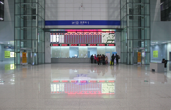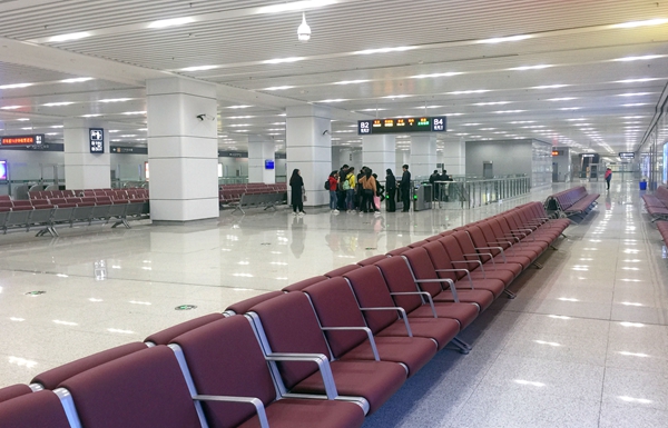 鄭機(jī)城鐵機(jī)場站候車大廳,空蕩的大廳內(nèi)只有少數(shù)乘客