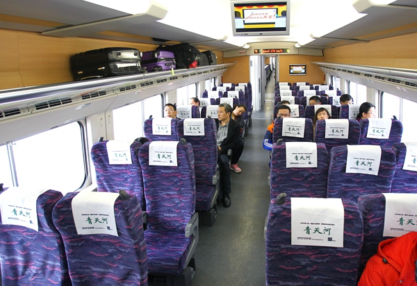 真實(shí)情況如何?3月16日,記者隨機(jī)進(jìn)行體驗(yàn)。在上午8點(diǎn)36分鄭州東開往新鄭機(jī)場的C2963次列車上記者看到,多數(shù)車廂內(nèi)的旅客只有十多人,而每節(jié)車廂定員90人。行李架上空空蕩蕩,只在兩頭零星地放著幾個(gè)旅行箱。而返程的C2964次列車則更為慘淡,多數(shù)車廂只有六七名旅客,最多的一節(jié)也不過十余人。