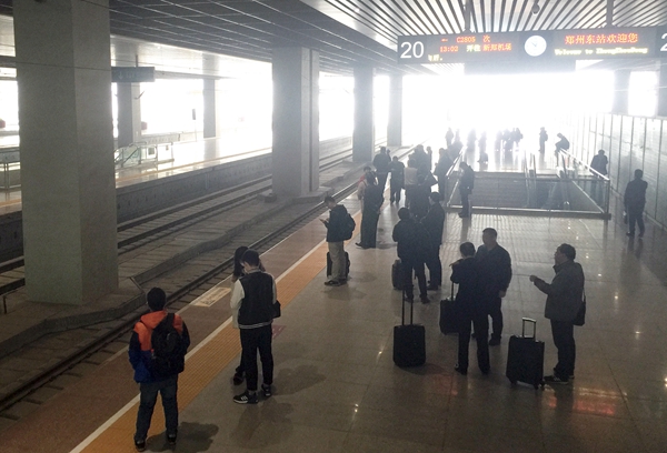 可乘坐613名乘客的班車,在鄭州東站發(fā)往新鄭機(jī)場站的站臺上,卻只有很少的乘客在等待