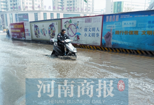 3月26日,鄭州晴空萬里,然而紫荊山路上卻多出一條百米長“河”。當(dāng)天上午12時(shí),紫荊山路與東大街交叉口,北向南方向的綠燈亮后,行人穿過東大街,卻被路南的一條“河”攔住去路。