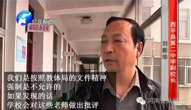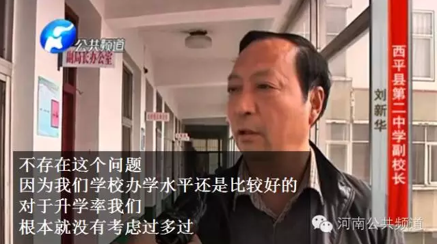 為了升學(xué)率、為了利益,不惜出賣(mài)學(xué)生嗎?為了證實(shí)家長(zhǎng)的說(shuō)法,記者又回到了西平縣二中,可是卻被學(xué)校保安拒之門(mén)外,隨后記者撥打了西平二中副校長(zhǎng)劉新華的電話。