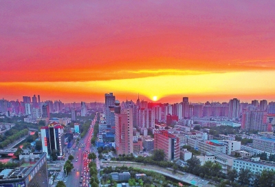 不怕蘑菇云,就怕火燒云。蘑菇云含雨,火燒云兆熱。昨天,在度過了一個(gè)悶熱熏蒸的白天后,鄭州的天空到了傍晚,煮起了紅色的晚霞,黃的紅的云,在西半天蒸騰著。本已打算拉上黑幕的夜晚,返照回光,天地大亮。