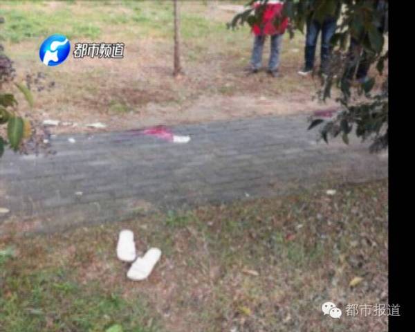 11月14號上午,都市頻道記者來到位于新鄭市龍湖鎮(zhèn)的中原工學(xué)院信息商務(wù)學(xué)院校園內(nèi),而此時(shí)的事發(fā)現(xiàn)場,還留有大灘血跡。