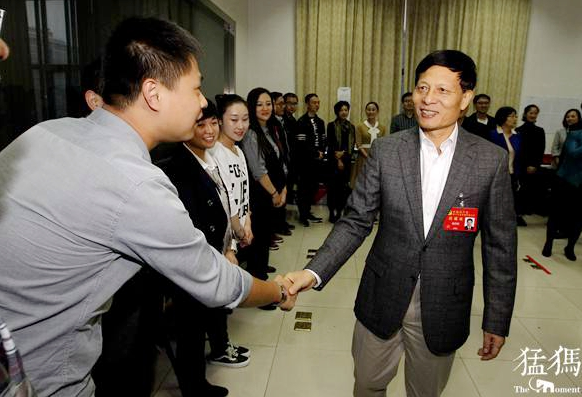 “你們的隊(duì)伍很龐大,每個(gè)人都要握到,一個(gè)也不能落下?!敝x伏瞻親切地說。