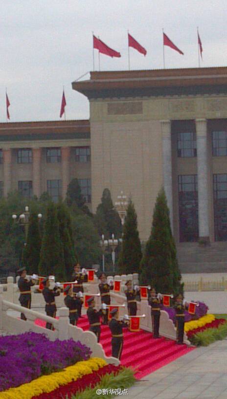 新華網(wǎng)北京9月30日電 據(jù)新華社“新華視點”微博報道,今天是國家設立的首個烈士紀念日,正值新中國成立65周年之際。上午,習近平、李克強、張德江、俞正聲、劉云山、王岐山、張高麗等來到天安門廣場,與首都各界代表一起,出席向人民英雄敬獻花籃儀式。