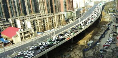 前天,隴海路高架京廣路至紫荊山路段一度被堵城停車場,平時三分鐘的路程竟然走了近40分鐘。原來是施工單位在橋面上擅自占用車道施工,事先沒有向交警部門報備。現(xiàn)在施工設(shè)備已移至地面,今天不會影響高架通行。