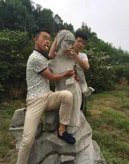 四川宜賓趙場(chǎng)佛現(xiàn)山景區(qū)花開(kāi)正艷,卻出現(xiàn)了與美景相悖的不文明行為。兩男子近日對(duì)一婦女雕像又是摟抱又是摸胸。據(jù)了解,雕像是兩年前計(jì)生文化進(jìn)景區(qū)時(shí)設(shè)置的。目前,拍攝時(shí)間和兩男子身份尚不明確??达L(fēng)景還是煞風(fēng)景?