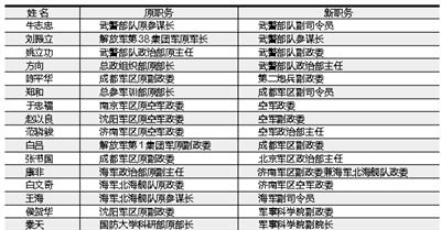七大軍區(qū)中,南京、成都、北京以及沈陽軍區(qū)的副政委職務(wù)均有變動。例如,成都軍區(qū)原副政委張書國調(diào)往北京軍區(qū)出任政治部主任,接替他的是南京軍區(qū)原副政委白呂;沈陽軍區(qū)的原副政委侯賀華外調(diào)至軍事科學(xué)院;另如,成都軍區(qū)原副政委陳平華調(diào)至二炮任副政委;姚立功也是在武警政治部主任與武警部隊副政委間調(diào)整。此外,空軍內(nèi)所涉及的副大軍區(qū)級調(diào)整也都是與政治干部有關(guān)系。